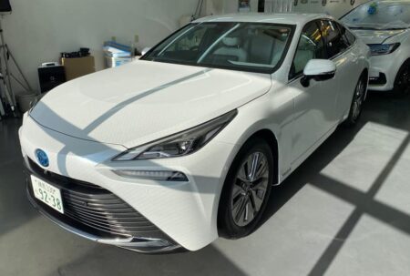 今回最新の撥水コート剤を使ったというMIRAIのメインテナンス(ガラスコーティング済です)をしてもらったら、及川さんも驚くくらい良いコンディションだったそうな。実際、いつも水洗いだけでビカビカ! なんなら汚れていても雨の中走っただけで洗車の必要性を感じないくらいに。ウソかと思うだろうけれどホントです。バンパーに付いた小虫の残骸も簡単に落ちるのが嬉しい。