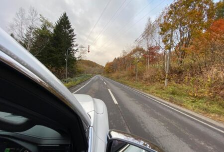素晴らしい。離岸した直後ですから。様々な盗難防止策を入れているのね! 安心感増す。永田のいびきで睡眠足りないまま苫小牧に到着。下道でイベント&ラリー開催地となる倶知安を目指す。あまり天気よくなかったものの苫小牧から支笏湖、羊蹄山の麓を通って倶知安までの道は最高だ! 交通量少なく紅葉が始まっている。北海道の道だとランクル300も大きく感じない。