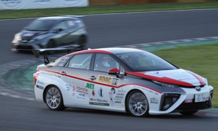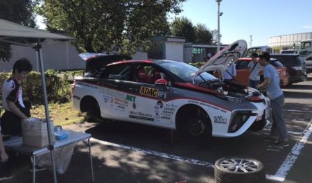 最終ラップで86(改)が落っこちてきたものの届かず。後ろのテスラ・ロードスターはオーバーヒートで遅れていった。結果、燃料電池クラスで1位。総合は3位という、何とか合格点のリザルトを残すことが出来ました~。次にMIRAIを走らせようとしてるのは11月3日に愛知県で開催されるGazooラリーのモリコロ戦。音と大柄なMIRAIのサイドターンを見て欲しいです。