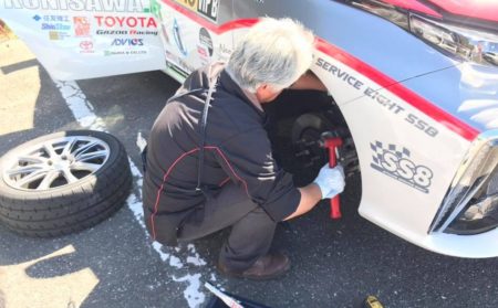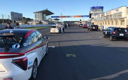 ピットに戻り、レースやラリーの時にデータ取りしている燃料電池開発チームの皆さんと状況チェックを行う。たまたま今回はトヨタの本工場でスタックを作っている皆さん観戦にきており、皆さん興味深そうに画面をのぞき込んでます。どうやらアドバンA052と喜多見さんのセットップがバッチリ決まり、想定以上の横Gを受けたとのこと。競技やると鍛えられます。