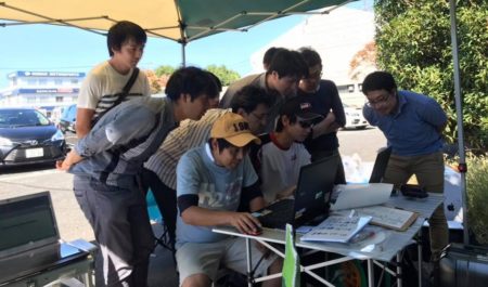 電気自動車レース、朝からパンク。大丈夫か~っ?