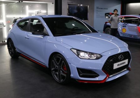 現代自動車じゃ珍しいスポーツモデルである『ヴェロスターN』。2リッターFFターボでスバルのSTI的なスポーツモデル。薄いブルーのカラーはWRCでも使われている現代自動車のスポーツモデル系。韓国人ってあまりクルマ好きじゃないため、国内での販売は伸びない。