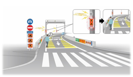 さらに一般車両に誤侵入の注意喚起したというけれど、本線に入ってから1800m以上(30km/hとして4分)走っている。これだけ時間あれば当該車線を走っている車両に注意喚起をするは十分可能だ。サーキットのようなイエローの激しいフラッシングと同時に「この先歩行者!」「この先自転車!」「この先逆走車!」などのサブ表示をすればいいだけ。首都高の注意喚起、どんなの?