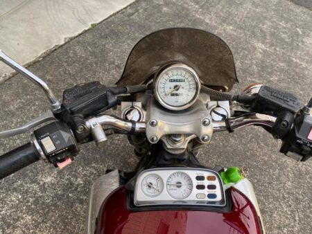 外観は1993年という年式相応。メッキ部分はところどころ腐食しているし、アルミ部分も表面コートが剥げてます。オーナーに聞いてみたら「これといった不具合はキーがオンの状態でも抜けることと、トリップメーターが動かないことくらいです」。乗っていたというからその通りなんでしょう。どんな使われ方をしていたか解らない中古屋さんのバイクより安心。