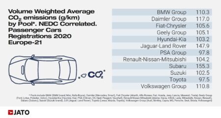販売したクルマ個々の燃費と台数をチェックした上、さらに他メーカーから融通しているクレジット(CAFEをクリア出来たメーカーは浮いた分の権利を譲ることが可能)の計算もしなければならない。どうやら2021年末くらいまで解らないんじゃないかと言われている。2020年の平均燃費が最も良かったのはトヨタ(マツダとレクサス含む)でCAFEの95g/kmに対し97,5g/kmと優秀。