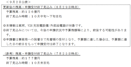 毎年秋になると電気自動車の補助金が予算切れして右往左往することになる。今年はSAKURAやアウトランダーPHEVなど魅力的なモデルの増加で、一段と予算切れが早くなりそう。8月2日時点で「10月末」となっていたけれど、9月2日に「10月中旬から下旬」へ10日間ほど早まった。10月15日の納車で補助金を受けられない可能性がある、ということ。