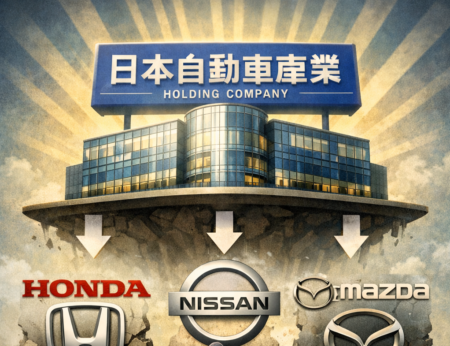 下が2025年である。直近10年の変化は驚くほど大きい。上位陣で伸びたのトヨタだけ。VWもGMも台数を減らした。なかでも顕著なのがアメリカ勢の衰退。GMなんて400万台近く落とした。フォード200万台減! ジリ貧だったメーカーが集まったステランティス300万台落ちてる。日産とホンダも100万台減らした。落ちていくメーカーの状況は変わらず今後も減っていく。