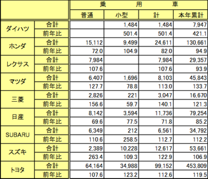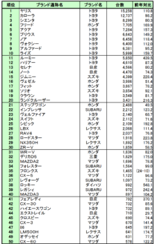 軽自動車の販売台数を見ると(トヨタを除く)各メーカーが仲良く順位を争っている様に見えます
