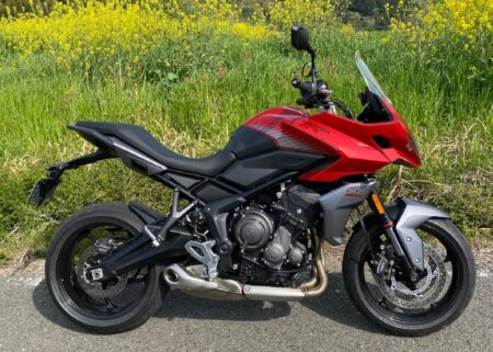 最近人気のトライアンフで最も小さい『タイガースポーツ660』は走り出して10mで乗りこなせる感じがするほど素直! このカテゴリーは低回転でギクシャクしがちな2気筒主流のなか、アイドリングから少し上の回転数でも粘る3気筒を搭載している。街中での取り回しも良好! 久し振りに乗るバイクとして人気らしい。価格も112万5000円と手頃。
