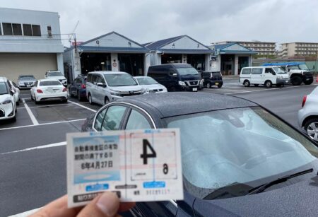 BMWの場合、オイル交換などしたらリセットしておく。車検場、月末が大混雑するため、4月14日午前に予約。早めに行って書類作成する。例によって車検場の係員は親切。書類チェックの後、5番レーンに並ぶよう指示された。行くとガラガラ! 10時30分開始の回、私の前は1台のみ。定刻になるとキッチリ点検開始。まず車体番号や灯火類のチェック。当然ながら問題無し!