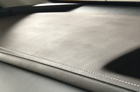 また、インテリアで気になったのは、ダッシュボード上の色ムラ。メーターバイザーの上もこんな感じ。なんでも「本モノの革からシボのカタを取りました」。なるほど写真で見ると革風。実車だと色ムラにしか見えませんが。ホンモノの革なら風味出ていいかもしれないけど、樹脂だと妙。どうせなら木目調パネルなども使いコテコテのイギリス車みたいにしたら面白い?