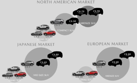 とはいえCX-50がカローラクロスのOEMというの記事を書いた際に「商品計画として疑問」とした。CX-5の販売を止めたらカローラクロスの兄弟車であるCX-50と「ラージ」と呼ばれるFRのCX-70との価格差が開きすぎるからだ。CX-5より大きく見えるCX-50を見て「これなら納得!」と思った次第。まぁこのあたりはアメリカの商品計画を立てた毛籠さんの手腕を疑っちゃアカンかった。