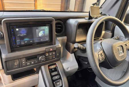 N-VAN e:の大穴、やっとディスプレイオーディオ付きました。本体はパイオニアの8500DVS(3万5380円)。そいつに変換ケーブル4400円+純正アタッチメント6270円(なぜかスピーカー付き)で4万6050円。おっとそいつにネオジム純正スピーカーセット7700円も買ったので5万3750円なり。どんな音質だろうか、とワクワクしていたら、まぁまぁでした。
