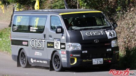 全日本ラリー選手権のオープンクラスに、場違いともいえるクルマが走っている。誰しも競技車両ではなくサービスカーだと思ってしまうハイエースだ。全日本ラリー選手権 第2戦ツール・ド・九州2022 in唐津にCASTレーシングから2台の新開発のショックアブソーバーを装着した、2Lガソリンエンジンハイエースが参戦した。ドライバーは自動車ジャーナリストの国沢光宏氏。記念参戦か、ひやかしか。いいえ、もちろんガチです。勝ちに行ってます。