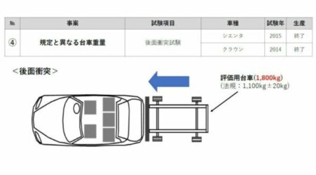 三つほど考えられる。1)試験費用を削減すべく会社ぐるみで行った。2)日本仕様の試験を行う時間的な余裕が無かった。3)国交省の担当者も容認していた、だ。それぞれ考察してみよう。まず1)だけれど、考えにくい。というのも10年以上まで遡った調査で出てきたのはシエンタとクラウンだけ。会社ぐるみだったらもっと多いだろう。2)はシエンタとクラウンで、どちらもアメリカ輸出の予定無し。したがって日本仕様の試験だけやれば十分だった。
