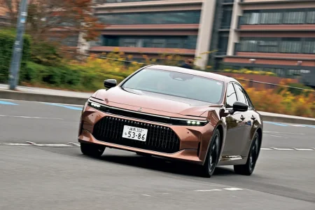 売れなかった15代目のクラウンを見たトヨタは「もうセダンの時代じゃない」と判断。16代目のクラウンをクロスオーバー・ボディにした。しかし! クラウン=セダンという古くからの顧客が多かったそうな。そこで急遽セダンの開発に着手。1年遅れてのデビューとなった。このクルマの面白さは「パワーユニットを燃料電池と2.5リッターのハイブリッドから選べる」ことにある。