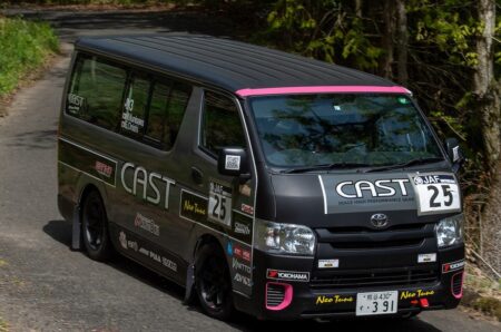 サイドバー付きのロールケージも組んであるため、よじ登る感じ。とうていラリー車とは思えないです(笑)。エンジン始動すると、けっこうな振動! エンジンマウントをガチガチに固めてあるから、アイドリングだと脳天まで響く振動だったりする。クラッチは標準。ハイエースのクラッチ、1250kgの荷物を運ぶために容量デカい! 空荷状態だと強化する必要は無いという。<続きを読む>