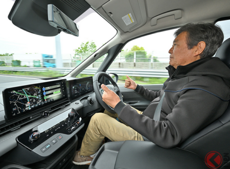 テストコースで試乗したプロトタイプの印象は以前にお届けしたが、6月に入ってメディア向け試乗会がやっと行われたので、公道に乗ってみた際の印象について改めてレポートしてみたい。1台目の試乗車は、高速道路でハンズフリー走行が出来る先進運転支援機能「プロパイロット2.0」搭載の最上級グレード「セレナ e-POWER ルキシオン」から。ボタンシフトに変わったDレンジをセレクトして走り出すと、あらら! なかなかエンジンが掛からない。