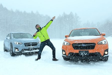 今年前半のヒット車になりそうなスバルの新型XV試乗会が軽井沢で行われたのだけれど、もう4月だというのに季節外れの大雪である! 当然の如くスタッドレスタイヤなど用意しておらず。一般道の試乗会も中止になってしまったのだが、「せっかく来て頂いたので駐車場内&施設内の道路であれば自由に乗ってください」。するといろんなことが解ったのでレポートを。