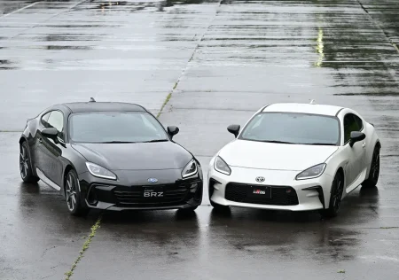 同時に一部改良が行われた「トヨタGR86」と「スバルBRZ」。ダンパーや電動パワーステアリング、エンジンのスロットル制御など、似たような内容の変更が行われているが、実際に走らせるとどのような差異があるのだろうか。富士スピードウェイのショートコースで2台に試乗したモータージャーナリストの国沢光宏氏が違いを明らかにする。