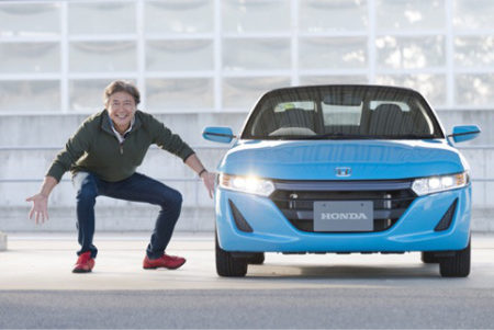 実際、クルマ小さいとこんなに低くなっちゃう。これ、横に立っていたらクルマが引き立たない。そんなこんなで、1)クルマを大きくカッコよく見せる。2)本来なら「私が乗りました」という意味の無いカットを少しでも意義のある(ないか?)ものにするという目的なのだった。すしざんまいの社長と違うことだけ解ってもらえたら嬉しい。
