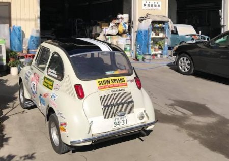 2週間くらいで仕上がるという。バンパーエンドのゴムが完成したら終了! いろんな人にハンドル握って貰えるようになる。なんたって今年はスバル360の還暦(私も同じ年なので還暦です)。このクルマのハンドル握っていると、戦争終わった直後のタイヘンだった時代に作られたクルマに込められた「夢」や「希望」を感じる。よくぞアメリカ縦断なんか出来たモンだ。