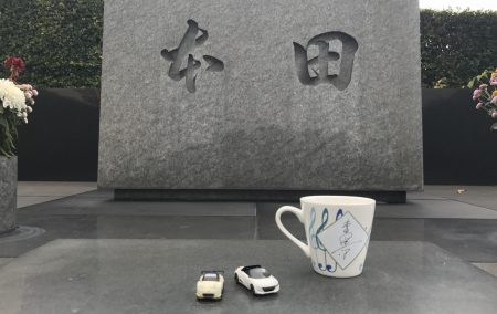 午後は御殿場に転戦し、ステップワゴンの試乗会。ホンダの人と一緒に富士スピードウェイ方面を流していたら、富士霊園の前を通ったので「本田宗一郎さんのところに寄って最近のF1の戦い方について聞いてみましょう」。そういえば私は1度も行ったことがありませんでした。
