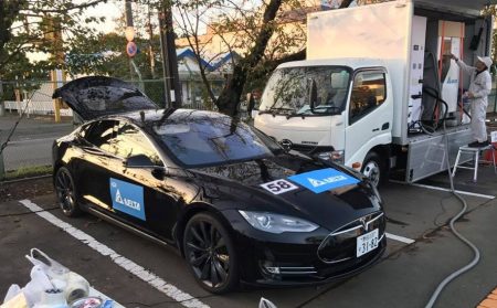 日曜日の電気自動車レースのため、テスラを筑波サーキットのパドックへ。レース当日に自走して行き、急速充電すると電池温度上がっちゃいます。前日到着し、温度上がらない200V使い満充電しなくちゃなりません。明日、3位以内に入れれば年間シリーズ1位。果たしてどうなる?