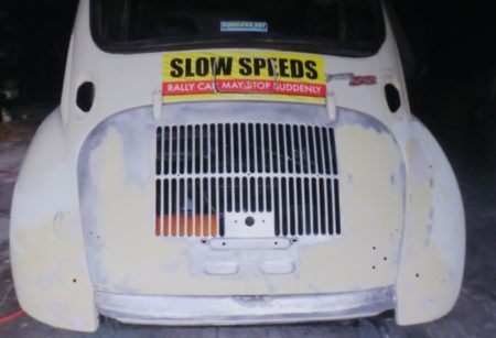 板金、ステッカーを剥がしたくないと妙高自動車に頼んだら「本当ならリアフェンダーくらいまで吹きたいですけどね~。とりあえず頑張ってみます」。考えてみたらリアフェンダーのステッカーって、知らないウチ(クルマが到着した夜)に貼られていたもの。当時は「勝手に貼りやがって。センスねぇな!」と剥がそうか思ったが、今になってみれば「そのままにしましょ」。