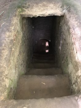 下も違うタイプのトンネル入り口。トンネルの存在に気づいた米軍は、ネズミをおぼれさせるように水を流し込んだという。なかなか一杯にならず4日間くらい流したそうな。どっこい! トンネルには傾斜が付いており、そのまま川に流れ込むようになっている。加えてトンネルの中は3階建てくらいになっていて、そう簡単に水没しない構造とか。