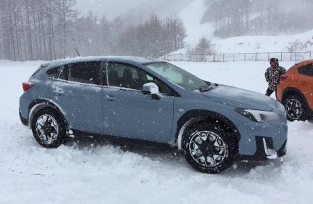 北軽井沢でスバルXVの試乗会があるため、7時に家を出て関越。碓井軽井沢ICで降り山登りを始めたら、もはや本降りです。軽井沢方向から走ってくるクルマの何割かノーマルタイヤらしい。交通量少ないためタイヤ痕が残っているのだけれど、カンペキ対向車線までハミ出しているのを何本か見た。クワバラ。