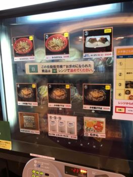 このフェリー、レストランの類い無し。あまり人が乗らないということなんだと思う。昨日休航だった本日も上を見て乗客50人と言ったイメージ。レストランやったら人件費で赤字でしょ。その代わり大量の自動販売機が! 300円の天ぷら蕎麦を始め、カレーやスパゲッティ、はたまたモツ煮までラインナップ。けっこうなバラエティで大いに悩んでしまうほど。