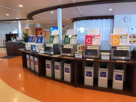 買ったらズラリと並んでいる電子レンジでチンすればよろしい。水や食器なども豊富に揃っている。昼と夜と酒のツマミくらいなら必要にして十分。しかも安価。カップヌードルを130円で売っている。コンビニで売っている金額と同等をイメージして頂ければ良かろう。美味しいし。これなら高くて上手くないレストランなんか不用だ。ただワインやウイスキーなし。