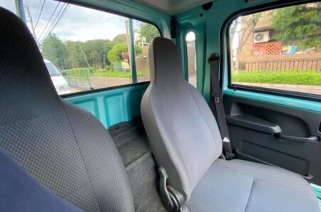 4気筒を搭載していたRRのサンバーと互角。これで真っ直ぐ走ってくれたら高速巡航も快適かと。キャビンについちゃ文句無し! 標準ボディを29cmストレッチしたグランドキャビンを選んだため、リクライニング可能。直立気味の窮屈な姿勢になってしまう標準キャブと快適性が全く違う。身長183cmの私でも余裕のドラポジを選べるほど。その分、荷台は1650mmに減る。
