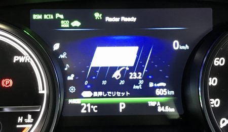 ツボにハマると「ドシン」ながら、私でも何とか納得出来るレベル。試乗レポートで書いた通り先代よりモーターアシスト領域が広くなっており(電池はリチウム)、ピックアップも大幅に良くなった。何より向上したのが実用燃費。高速道路を制限速度近辺で走り23,2km/Lとな!