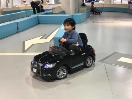 昨日、孫と一緒に台場のメガWEBに行ってみた。上はあと2ヶ月で5歳。電動のレクサスに乗れる。顔つきはLSなんだけど2ドアですね。チケット買おうとしたら券売機に電動カーのボタン無い。フロアの女性に聞いたら「プチライドワンは無料です」。あらま! 日曜日の夕方ながら10~20分待てば乗れます。アクセル踏むと進む。乗れるかな、と思ったら全く問題無し。