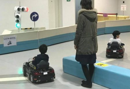 コースの途中に2カ所ほど信号あり、付き添いの皆さん子供に厳しく信号守るように教えてます。見てると当然ながら1度じゃ納得出来ないらしく、何回も乗ってる。ウチも3回乗りしたね。すると2回目くらいから何も言われなくても信号で止まるようになるから面白い。有料でもいいと思うけれど、こんなことで儲けたってタイしたことないとトヨタは考えているんだろう。