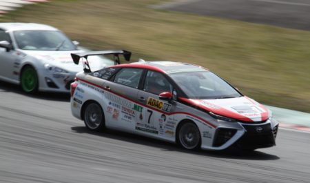 人生楽しく、というのが私の信条であります。朝サーキットに行くと「面白いコトをしてみました~!」。なんですか、とMIRAIを見たらフロントが違うクルマになってるぢゃありませんか! 今回のレースに合わせ、冷却不足をなんとかするべくラジエターを追加。風抜けの良いグリルを探してたら、傷物のグリルがディーラーにあったそうな。不要品というので引き取ったという。
