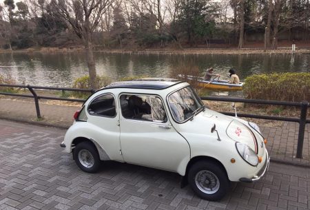 続いてスバル360の撮影。どこに乗って言っても、止めて置いても、年輩の方々から「懐かしい」と喜ばれ、若い人達は「可愛いクルマ!」と言われます。ヒストリックカーのイベントで集まっていると目立ちませんが、単独で走ってるとスンゴイ注目度(皆さん見る目はやさしい)だったりして。