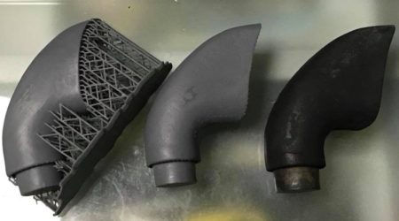 右のオリジナル部品を3Dスキャナーで寸法測り、3Dプリンターで作ったのが左。これをバリバリと壊していくと真ん中のようになります。こいつを塗装すればOK。驚いたことに形状だけでなく重さや素材感もソックリ! やがて入手難で困っている外装部品も、現物あれば簡単にコピーできるようになるかもしれません。ヒストリックカーのパーツ屋さんを開業できる?