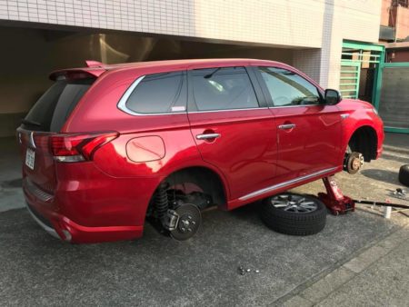 XC60をスタッドレスタイヤに交換していなかったので昼ご飯食べてから作業。いつもの如く前後輪を一度に交換しようとしたら、リアサスの伸び側ストローク長くて後輪がなかなか”離陸”しない。いや、離陸させると今度は前輪が凄く高い位置まで上がってしまう。XC60の19インチタイヤ、メチャクチャ重い! 高く上がった前輪の位置まで持ち上げるのは腰に悪い。