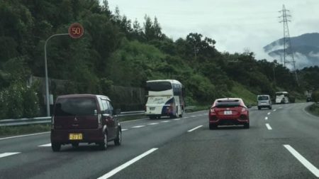 はたまた28日の中央道はなぜか長い長い区間50km/hのまま。渋滞あるワケじゃなく、天気だって写真の通り悪くない。ここをプロパイロット2で手放し運転しようとしたら、速度厳守。上の2枚の写真は知人から貰ったものなので走行速度など不明ながら、プロパイロット2と同じく速度守る私なんか後続車に車間ビッタリ付けられてしまう。40km/hって嫌がらせに近い。