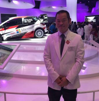 トークショー終了後、一般開催日の様子を見に行く。トヨタのブースを覗くと、ヤリスWRカーの前に白いブレザー来た市川さんが! WRCのTVでもお馴染みなので御存知の方も多いだろう。いつもなら開催中のWRCイギリスに居るのに『説明員』として会場にいました。