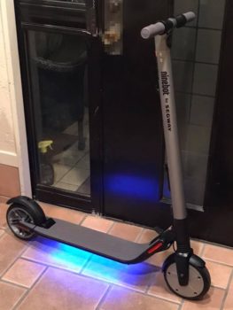 仕上がり抜群に良い。すぐ乗れるのかと思いきや、スマホを使ってのセットアップが必要。アプリをダウンロードし、ブルートゥースでナインボットと繋ぐ。スマホで性能管理やソフトのバージョンアップなど行うのだった。かなり本格的で驚く! ちなみに公道での走行は不可。歩道や自転車専用道、公園など不特定多数の人が居る区域もダメ。日本だと乗れる場所超少なし。