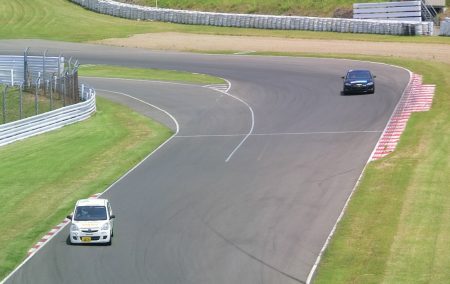 菅生の1コーナー。飯倉選手のミラにジワジワ差を付けられていく