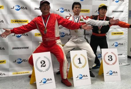 アウトから抜くそぶりを見せたり、インに飛び込むライン取ったり、クロスラインを仕掛けたり。地頭所選手はラインを潰しに来るものの、最初から抜く気無し。むしろジジイはムダにアクセル踏まず、相手にアクセル踏ませるように仕掛ける。リーフe+の第1戦で86改の金沢選手を揺さぶり電欠に持ち込んだのと同じ。そんなプレッシャーを数周に渡ってかけ続けていたら、がっくりペースダウン。