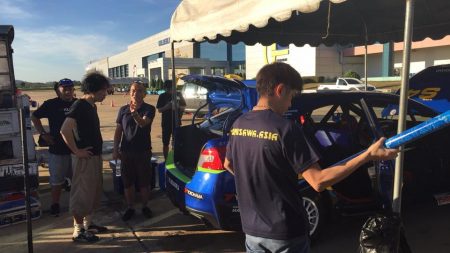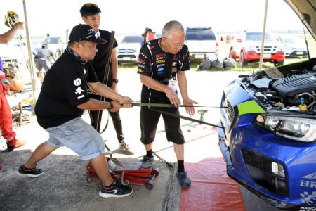 フロントぶつけてサービスに戻るとラリー関係者の皆さん集まってきて「どうしたんだ?」。そして「なんでそんなに頑張るんだ。走りきればいいのに」。すると私が後続車に追いつかれることを心配してプレッシャーになっていると思ったらしい。本来2分の後続車との間を4分に開けてくれる。