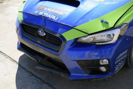 正面はガケになっており落ちたら100%。そこで少しでもブレーキング距離を稼ぐべく距離を取り、丈夫そうな立木を車体のど真ん中に当たるよう狙う。ノーマルのWRX S4、事故時の損害金額を減らす設計になっておりど真ん中が一番丈夫なのだ。ガケならリタイア。立木なら運です。で、どが~ん!