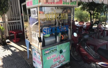 第3候補はタクシーの運転手にオゴッて貰ったサトウキビジュース。生のサトウキビを絞るのだけれど、こんなに甘くて美味しいヤツは初めて。黒糖のジュースみたいだった。それはいいのだけれど、見ていたら怪しい氷を入れていた。街中から離れた場所であり、どんな氷か不明。飲むのをやめようかとも思ったけど、ベトナム人を怒らせると怖そうなので笑って飲む。