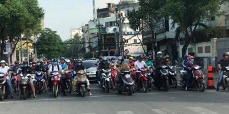 ベトナムで一番楽しかったのがタクシーでの移動。それだけでアトラクションです。フランスが社会基盤を作ったため交差点はロータリー。普通、ロータリーは回っている側に絶対的優先権あり、交差点に入るときに待つ。けれどそれをやってると交通量増えたらニッチもサッチもいかなくなり渋滞に。だからシャンゼリゼなど信号を作ったほど。ベトナムは違う。